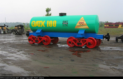 This photo comes from the RR Picture Archives (photo credit: Matt Adams, July of 2005). Fellow collector Dave Pecota pointed out that GATX is one of the largest lessors of rail cars in the world, and their paint shops can turn out custom cars quickly and easily. Given their 100 year anniversary, some celebratory merchandise and special rail cars would certainly be in order. And, this is not uncommon in the rail industry in general.
